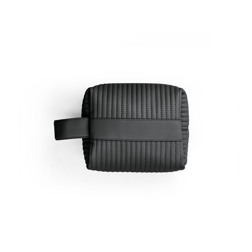 Dotata di maniglia laterale e fascia frontale in PU, perfetta per la personalizzazione. Elegante, compatta e sostenibile, ideale come pochette, beauty case o borsa da viaggio.