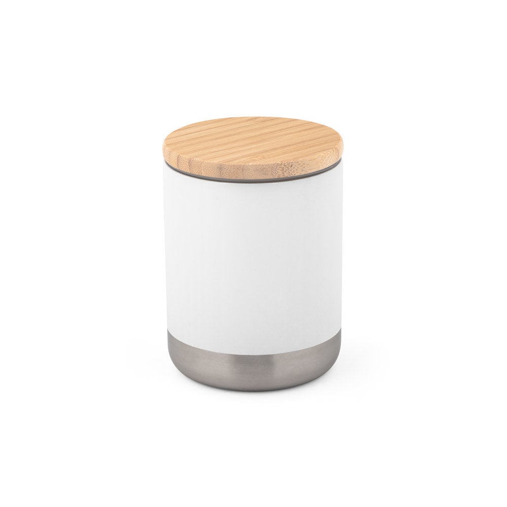 Dotato di coperchio in bambù con guarnizione in silicone che assicura una chiusura sicura e senza perdite.